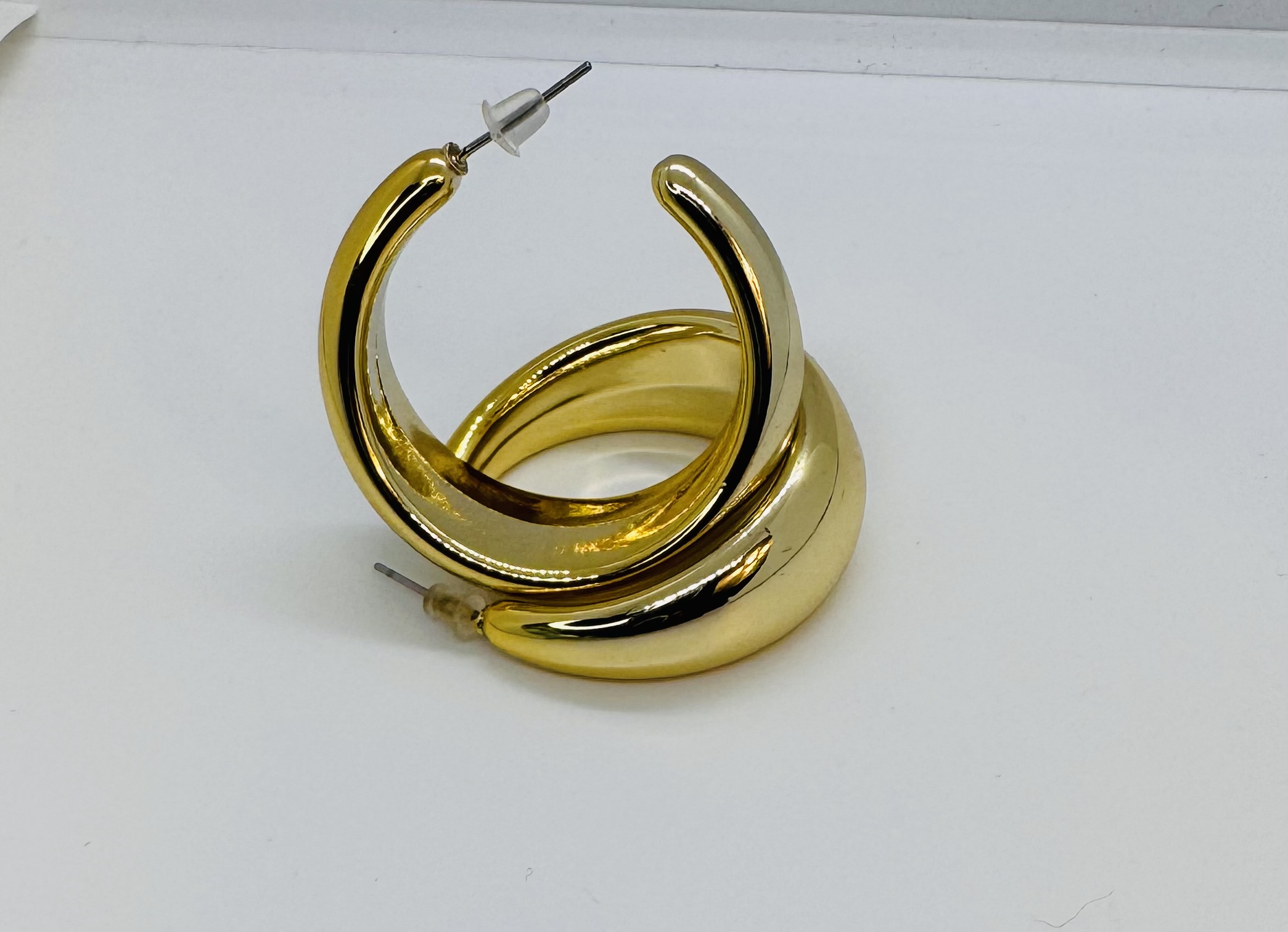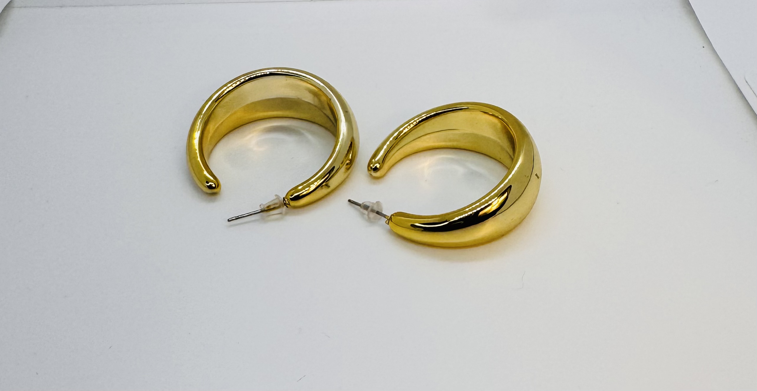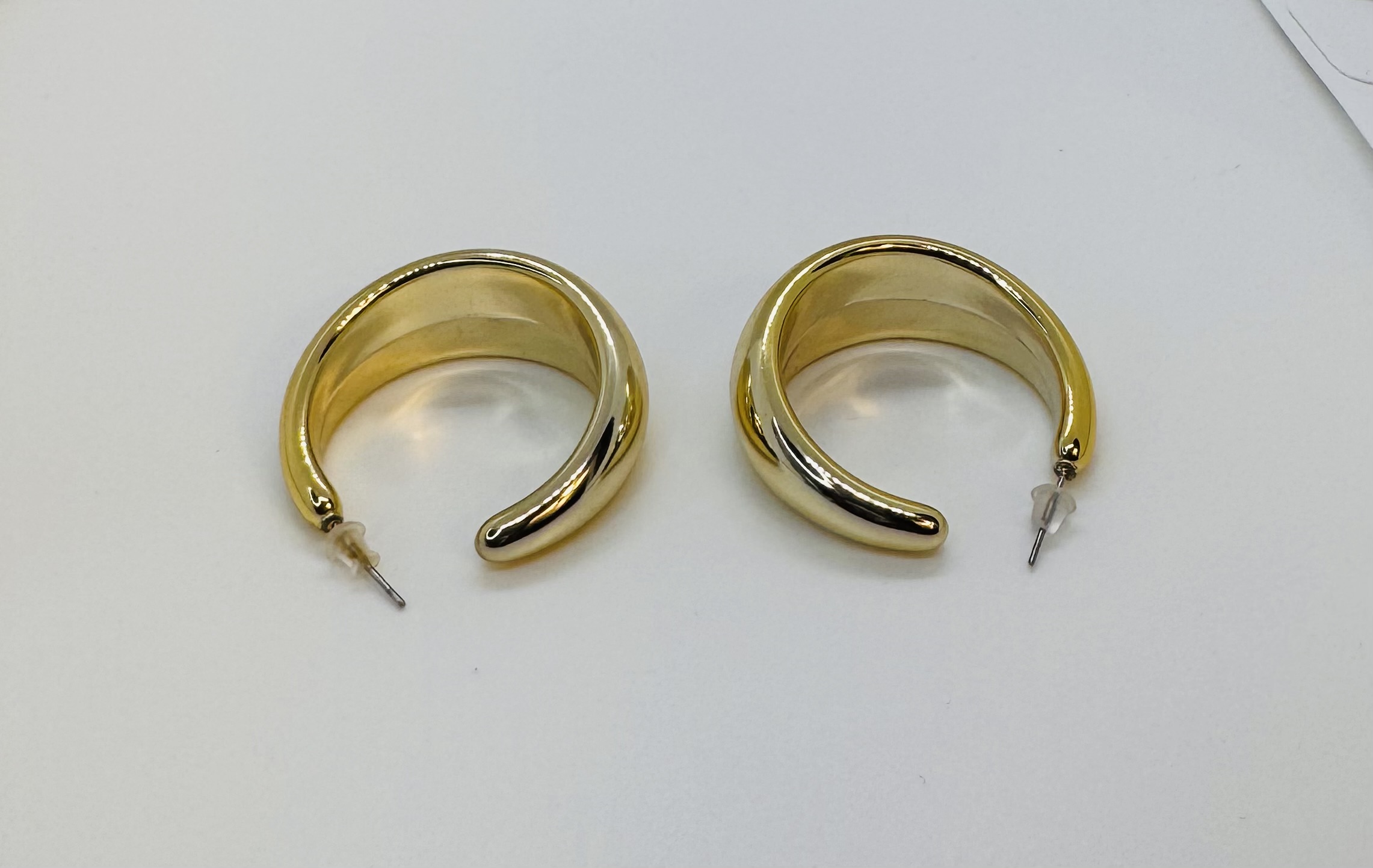 Make a bold statement with these chunky gold hoop earrings. Designed with a sleek, high-polish finish, these hoops feature a modern open-ended silhouette that adds a touch of sophistication to any look. Lightweight yet eye-catching, they are perfect for both everyday wear and special occasions.