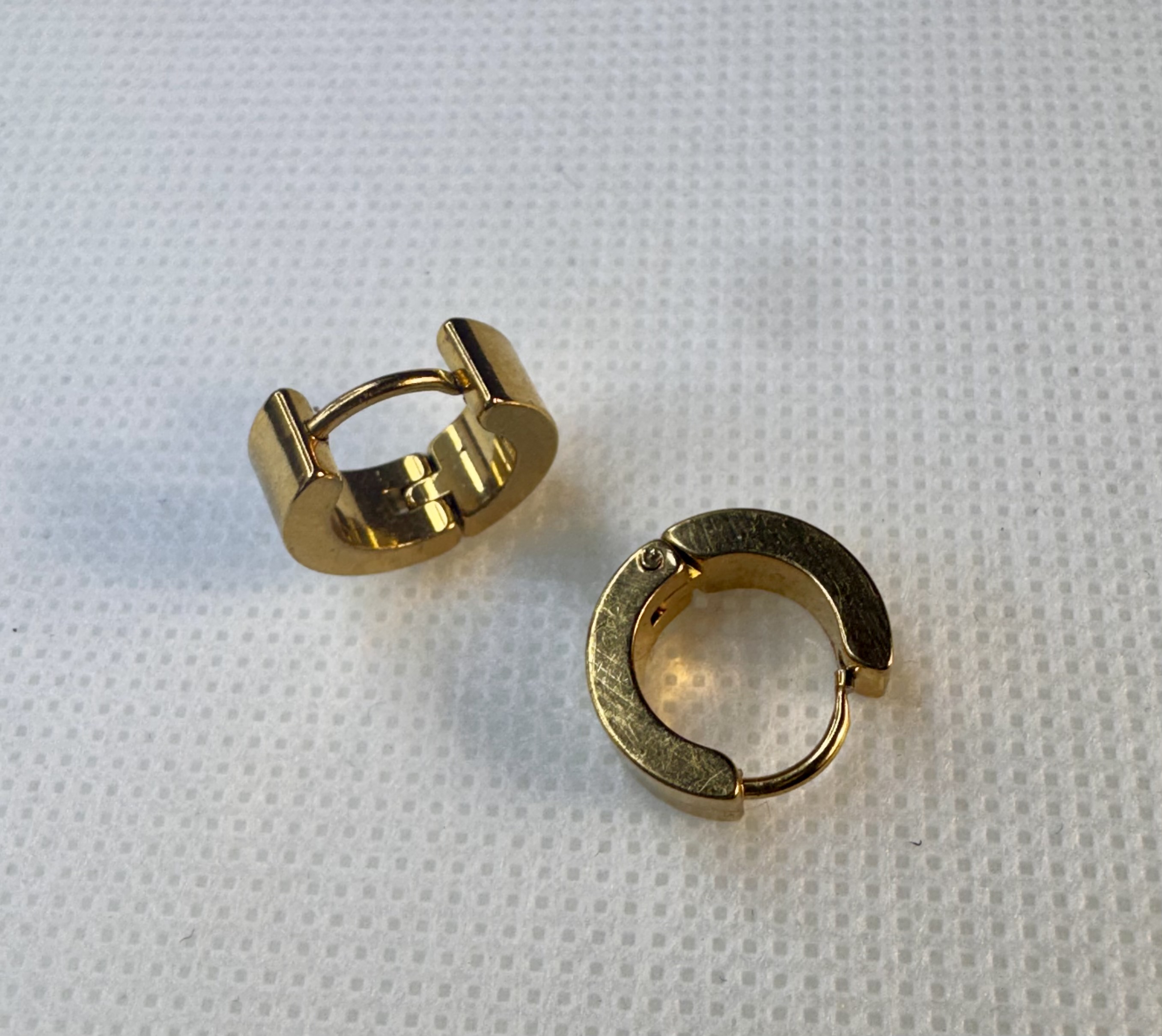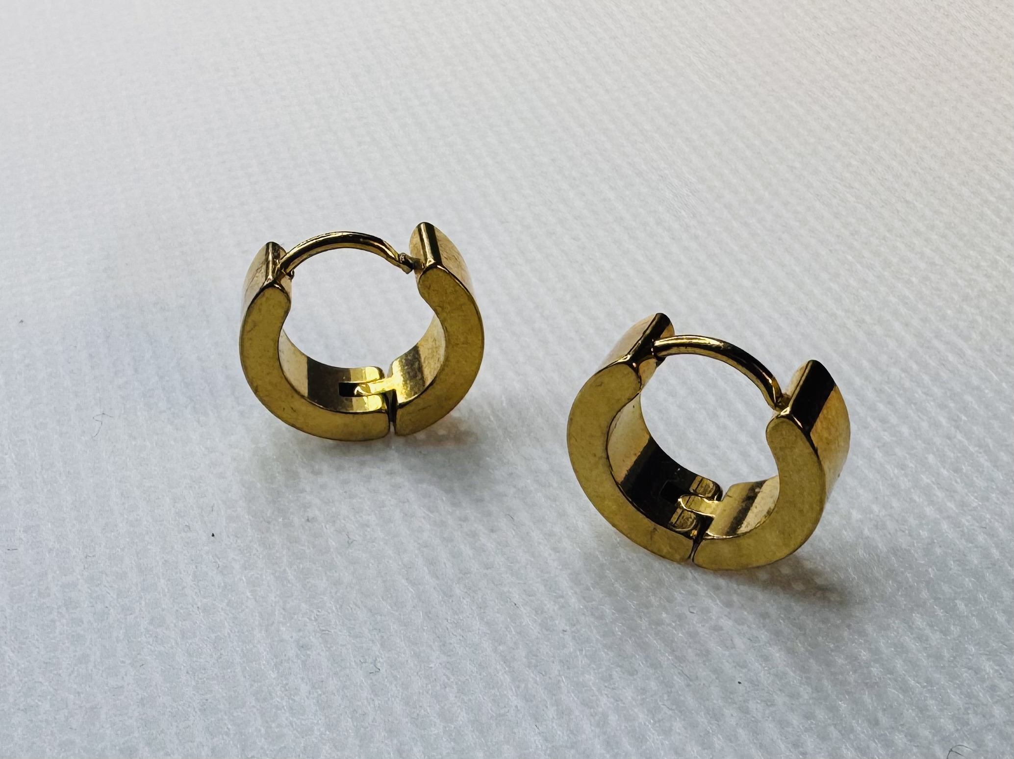 Elegant and modern, these gold tone huggie hoop feature a sleek, compact design with a smooth polished finish lightweight and comfortable, huggie hoop style small, close to the ears.