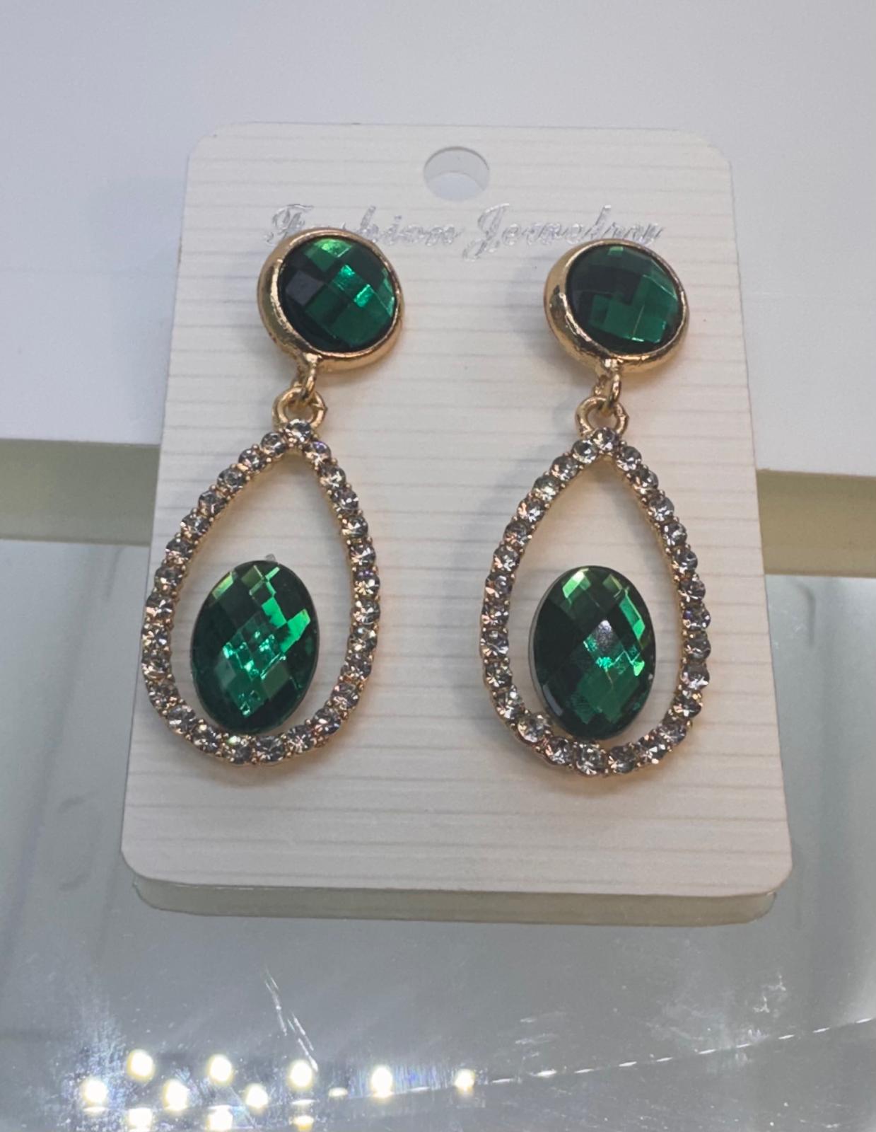Green Crystal Drop Earring