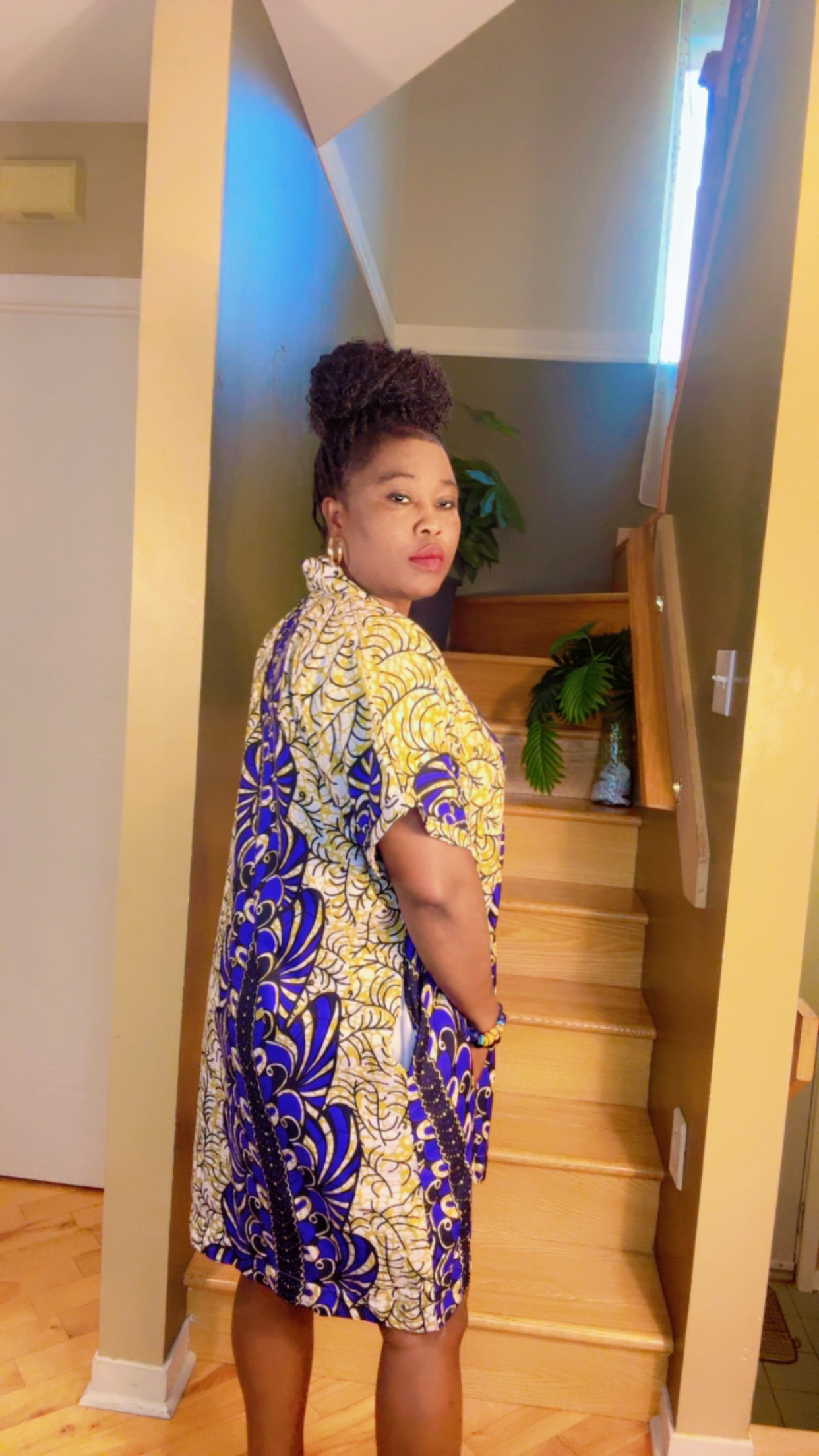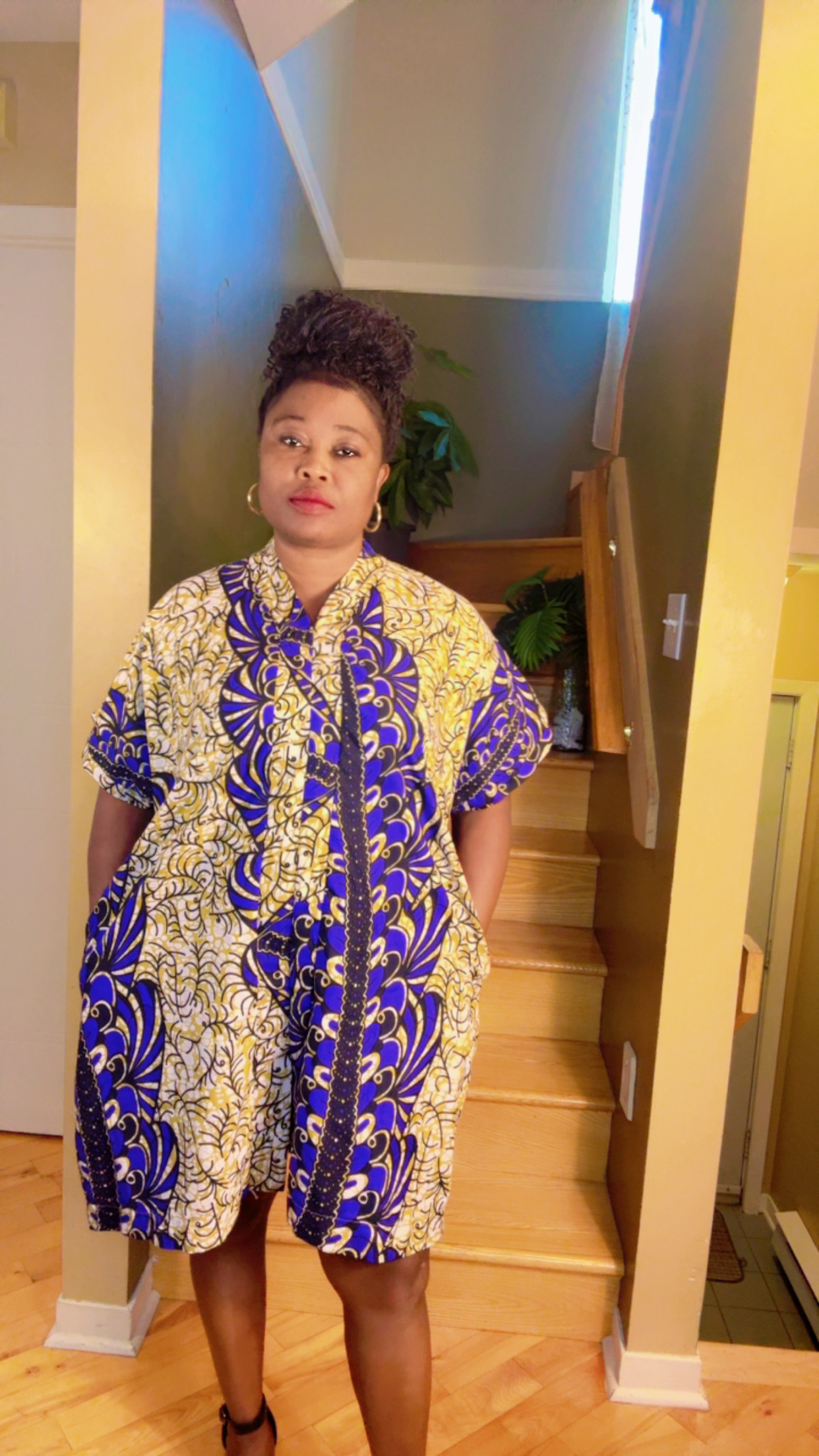 Our short elegant dress made with African print this timeless dress soft, breathable fabric ensure, fabric ensures comfort while comfort, flatters every silhouette. Perfect wedding, parties or casual outings. We size ( S, M , L, XL XX L)