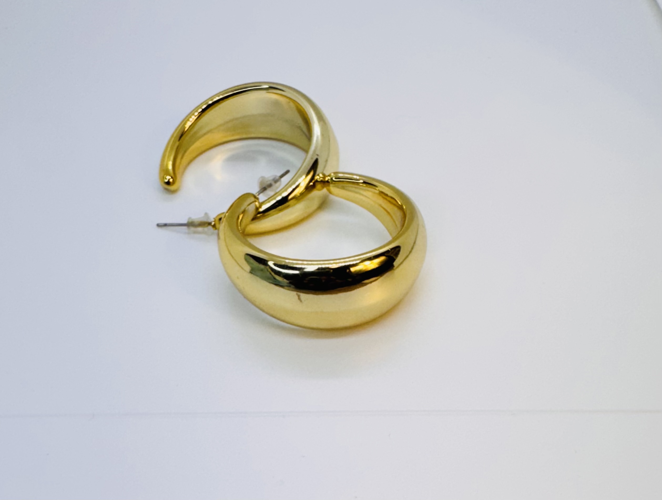 Make a bold statement with these chunky gold hoop earrings. Designed with a sleek, high-polish finish, these hoops feature a modern open-ended silhouette that adds a touch of sophistication to any look. Lightweight yet eye-catching, they are perfect for both everyday wear and special occasions.